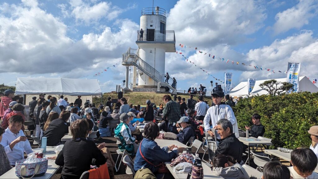 灯台のそばで音楽フェスが開かれ、多くの人が集う場所に
