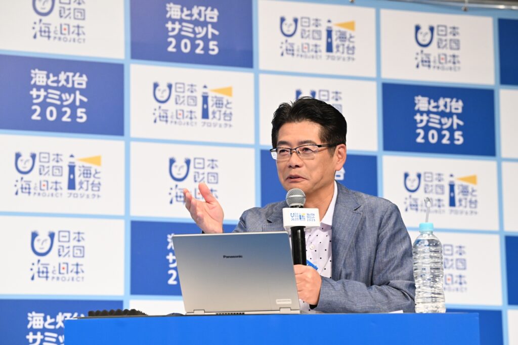 「灯台は私たちに“考える旅”を与えてくれる存在」と話す海野光行常務