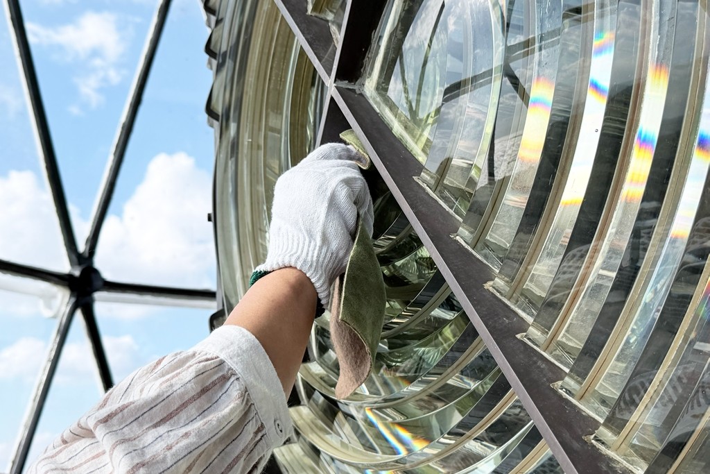 当日は、かつて角島灯台で勤務していた元灯台守による当時のお話を聞いた後、レンズ磨きやロープワークを行う「灯台守のお仕事体験」が実施されました。夕方からは「夕日と夜空の灯台見学ツアー」が行われ、レンズが回りながら光を放つ様子を通常非公開の灯室(レンズがある場所)から見学する特別な体験を実施しました。