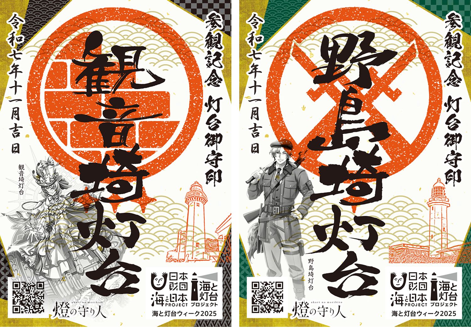 2025年度の新たな試みとして、灯台と、灯台擬人化プロジェクト「燈の守り人」キャラクターをデザインしたオリジナルの「灯台御守印(とうだいごしゅいん)」を制作。「海と灯台ウィーク」期間中、観音埼灯台(神奈川県)と野島埼灯台(千葉県)を参観された方に進呈しました。たくさんの方に参観いただき、配布開始から3日で配布終了となりました。