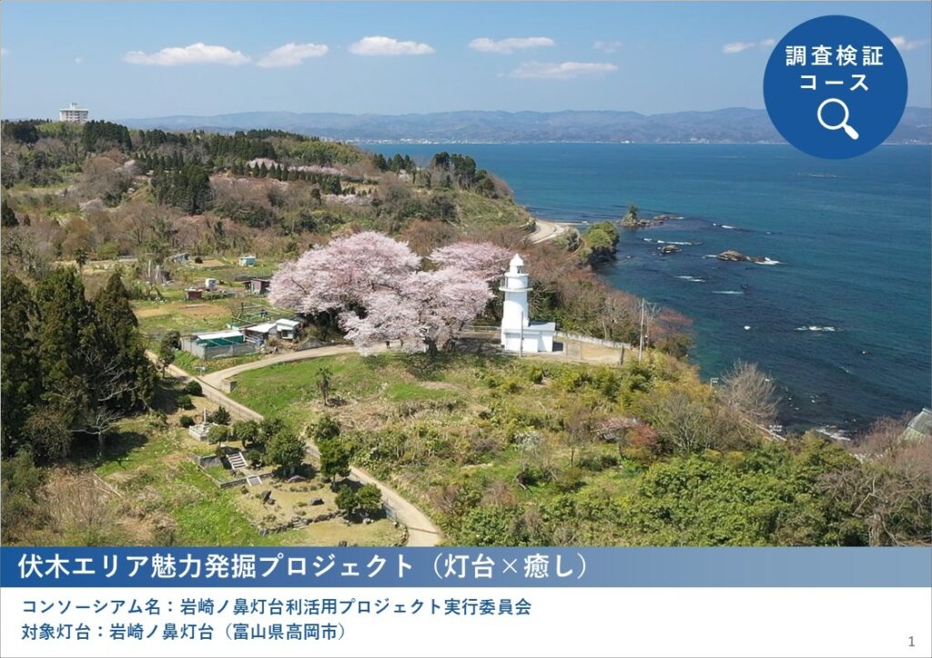 同事業では、景勝地としてポテンシャルの高い岩崎ノ鼻灯台の観光資源としての可能性を探るとともに、能登半島地震からの復興への願いを込め、灯台を核とした「灯台×癒し」の伏木の魅力体感コンテンツで、灯台を訪れる人を増やせるかを検証する実証事業を行いました。