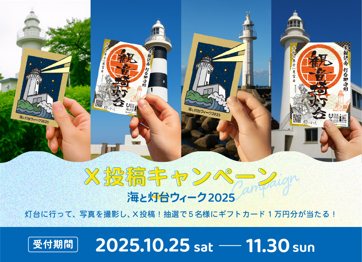 - 灯台訪問・灯台めぐりを楽しんで、写真投稿!抽選で5名にギフトカード進呈「海と灯台ウィーク2025 X投稿キャンペーン」